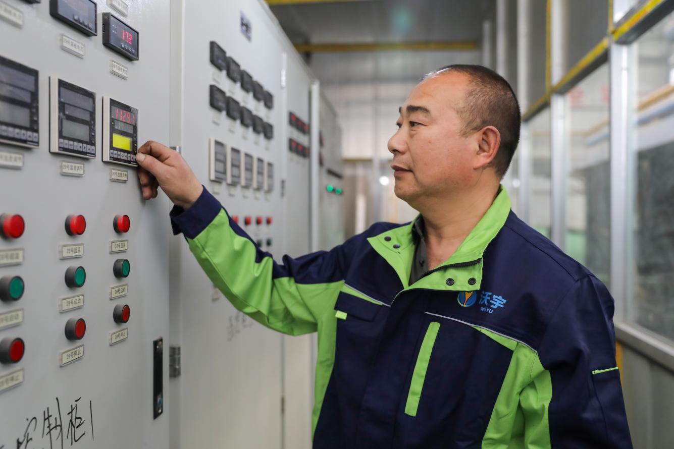 4月14日,在新疆拓新玄武岩,工人在调控漏板温度。程永超 摄