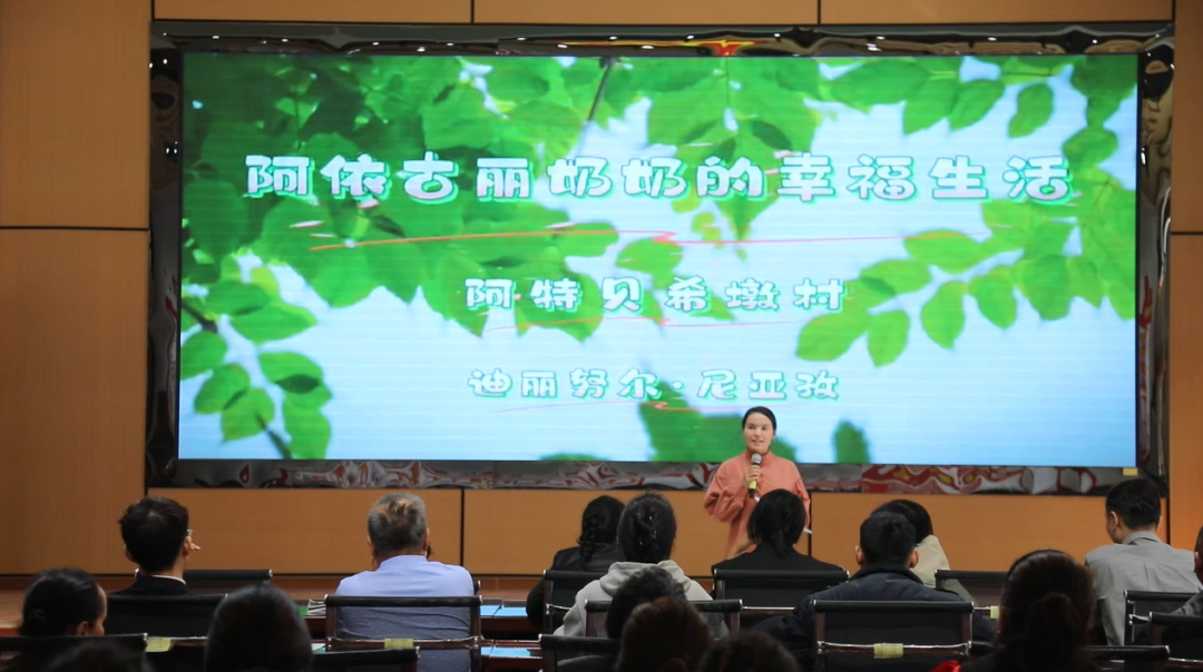 在比赛过程中,选手们用质朴平实的语言,真挚深厚的情感,结合自身经历与实际感悟,分享了一则则鲜活的故事。有讲述辖区致富带头人李新民种植特色板栗南瓜,不仅带来了可观的收益,也带动了附近村民增收致富的故事;有分享阿克苏“四好公路”的故事,曾经那些困住几代人的沙梁沟壑,在党和政府大力推进“四好公路”建设下,如今化作托举一代代人美好希望的“幸福路”;有在党和政府各项惠民政策的支持下,村民阿依古丽老奶奶过上了幸福美满的生活,并积极参加村委会农业知识培训,靠自己双手勤劳致富的故事;有兵地融合实现设施共建、资源共享、深度嵌入、优势互补的故事等。