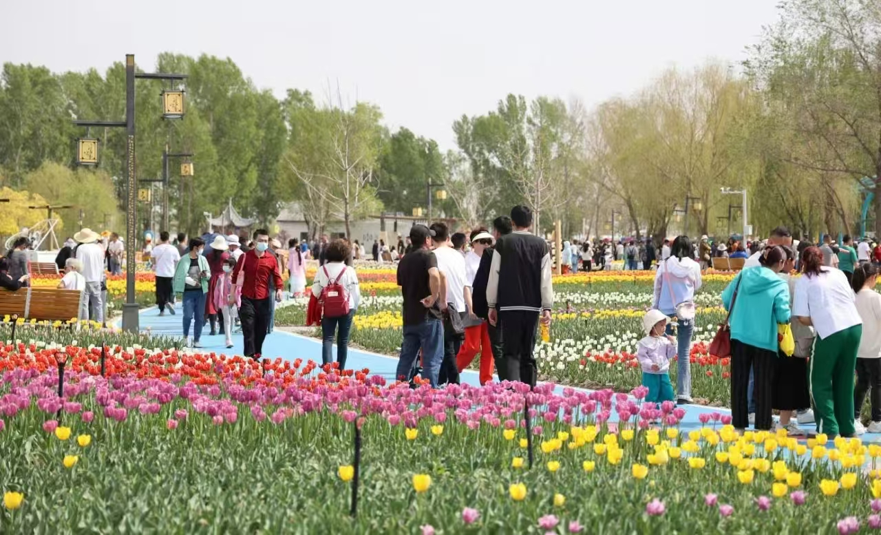 第六师五家渠市地处天山北麓东段,辖区旅游资源丰富,拥有高山草原、沙漠湖泊、军垦文化、观光农业、古城遗址、丝绸之路古迹和民族风情等。五家渠,被誉为“西域水城 丝路花都”和新疆首府的后花园,是一座国家级“园林城市”,城市绿化率达到45.6%。自2005年引种郁金香至今,通过二十年精耕细作,突破传统赏花模式,形成350万株郁金香规模,涵盖30余品种、8大展区,打造集生态美学、沉浸体验、文旅融合于一体的全域文旅新地标。青格达湖畔100亩特色花海,重瓣型、饰边型等珍稀品种,构筑成西北最大郁金香主题景观带。如今,郁金香文化旅游节已经成为六师五家渠市旅游品牌的一张“金字招牌”。(图片来源:青格达湖旅游度假区)