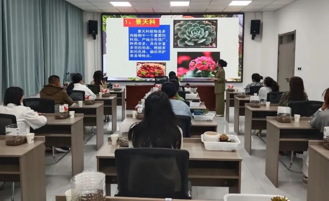 课堂上,援疆教师以通俗易懂的语言,从多肉植物的品种特性、生长习性讲起,细致解析光照、浇水、土壤配比等养护要点,并针对南疆气候特点,重点讲解了夏季遮阳、冬季防寒等地域化养护技巧。并通过实物展示,揭秘多肉繁殖、病虫害防治的“妙招”,让学员直呼“干货满满”。