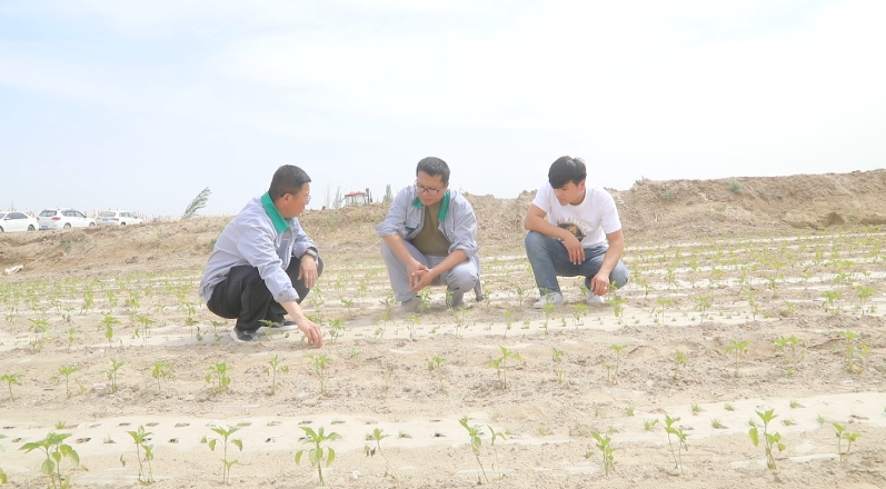 “以前,这里种植的是棉花,播种后出苗率极低。通过逐年实施土壤改良、优化种植技术,如今这片土地已实现了华丽转身,棉花亩产达到500公斤。今年,我们在这发展辣椒与孜然套种,现在嫩绿的新芽破土而出,长势喜人,彰显着勃勃生机。昔日的‘不毛之地’真正成为了‘丰收沃土’,见证着科技兴农与勤劳坚守创造的农业奇迹。”王建军介绍道。
