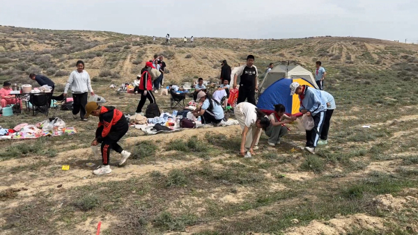 同学们还自觉清理场地垃圾,用实际行动践行环保理念,让文明之花绽放在翠山脚下。