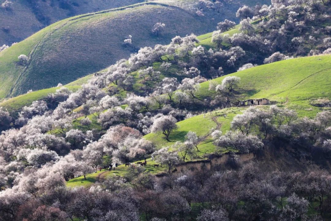 那拉提杏花谷是近年来的网红赏花地,被列为“中国十大赏花胜景之一”。这里分布着3万余亩野杏林,是西北地区最大的原始野杏林分布区,被誉为“离天空最近的原始杏林”。近年来,新源县以那拉提杏花谷为核心,抓住春季旅游契机,推动“大那拉提”区域旅游一体化发展。络绎不绝的赏花游客为咫尺之遥的四师可克达拉市七十一团七连带来了源源不断的住宿客源。