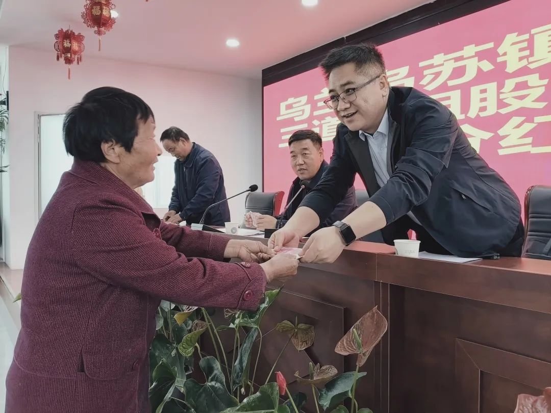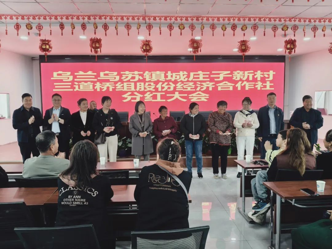4月19日,乌兰乌苏镇城庄子新村三道桥村股份经济合作社举办村集体经济收益分红大会,让村民共享村集体经济发展带来的红利。