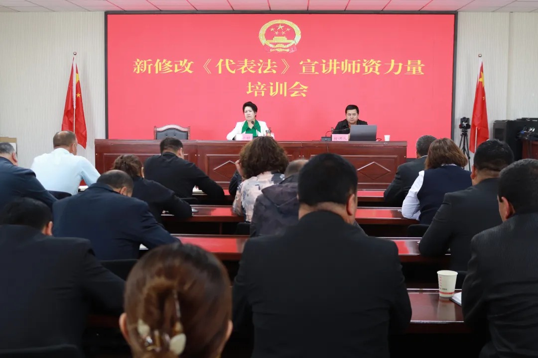 4月16日,和田地区皮山县人大常委会组织开展新修改的《代表法》宣讲师资力量培训会,县人大常委会党组副书记、主任沙拉买提·依明主持会议,县人大代表和人大干部80余人参加。