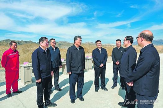 4月22日,自治区党委书记马兴瑞在博尔塔拉蒙古自治州精河县调研。这是马兴瑞来到新疆厚旺矿业有限责任公司项目现场,察看勘探开发情况,听取精河县矿业发展工作介绍。□石榴云/新疆日报记者崔志坚摄