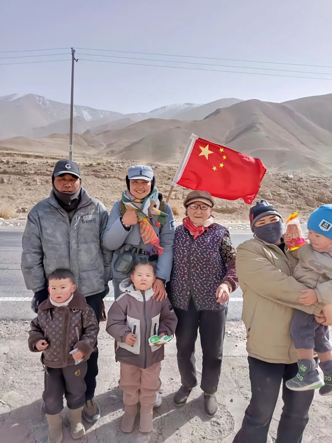 3月28日,毕古丽·马特勒汗徒步途中与当地居民合影留念