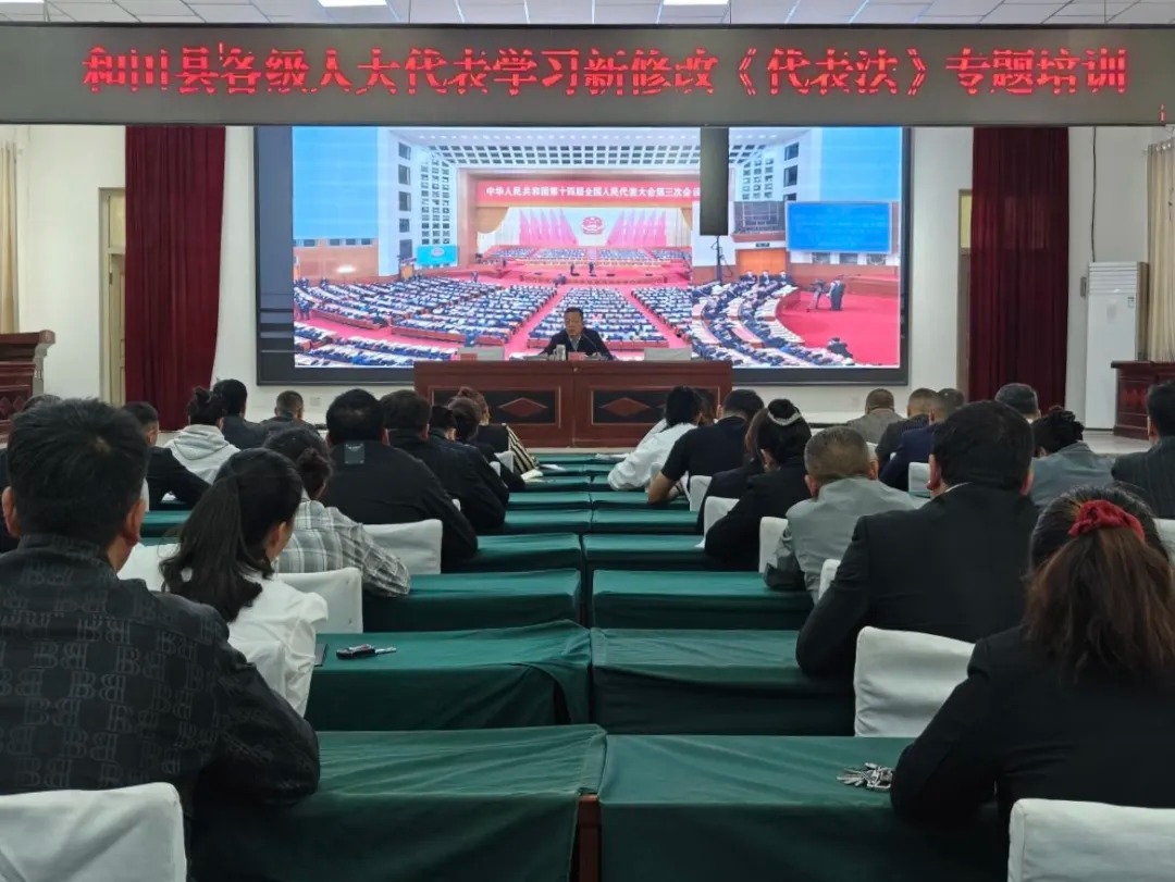 近日,和田县人大常委会在罕艾日克镇举办人大代表学习新修改的《代表法》专题培训,对新修改的《代表法》进行深入解读,县乡两级54名人大代表参加培训。