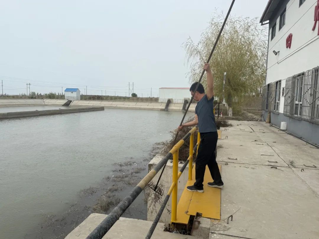 4月21日,四师扬水站一派忙碌景象。工作人员有的在闸口打捞垃圾,有的在水泵房为水利设施除锈上漆、润滑保养,全力开展春修春检工作。