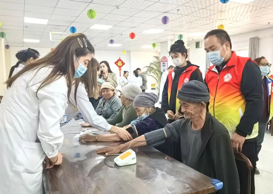 活动现场,医务人员为福利院的老人们测量血压、测心率、测血糖、健康咨询及诊断等服务,耐心解答每一个问题,仔细视、触、叩、听,并现场示范教授护工们如何帮助老人进行康复训练,并为老人科普每天运动量知识等,对有基础疾病的老人还特别嘱咐康复用药、饮食等注意事项,医护人员的亲切问诊,医务人员的耐心服务让整个社会福利院暖意浓浓。