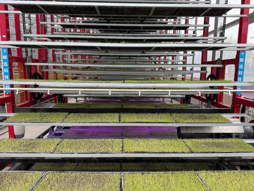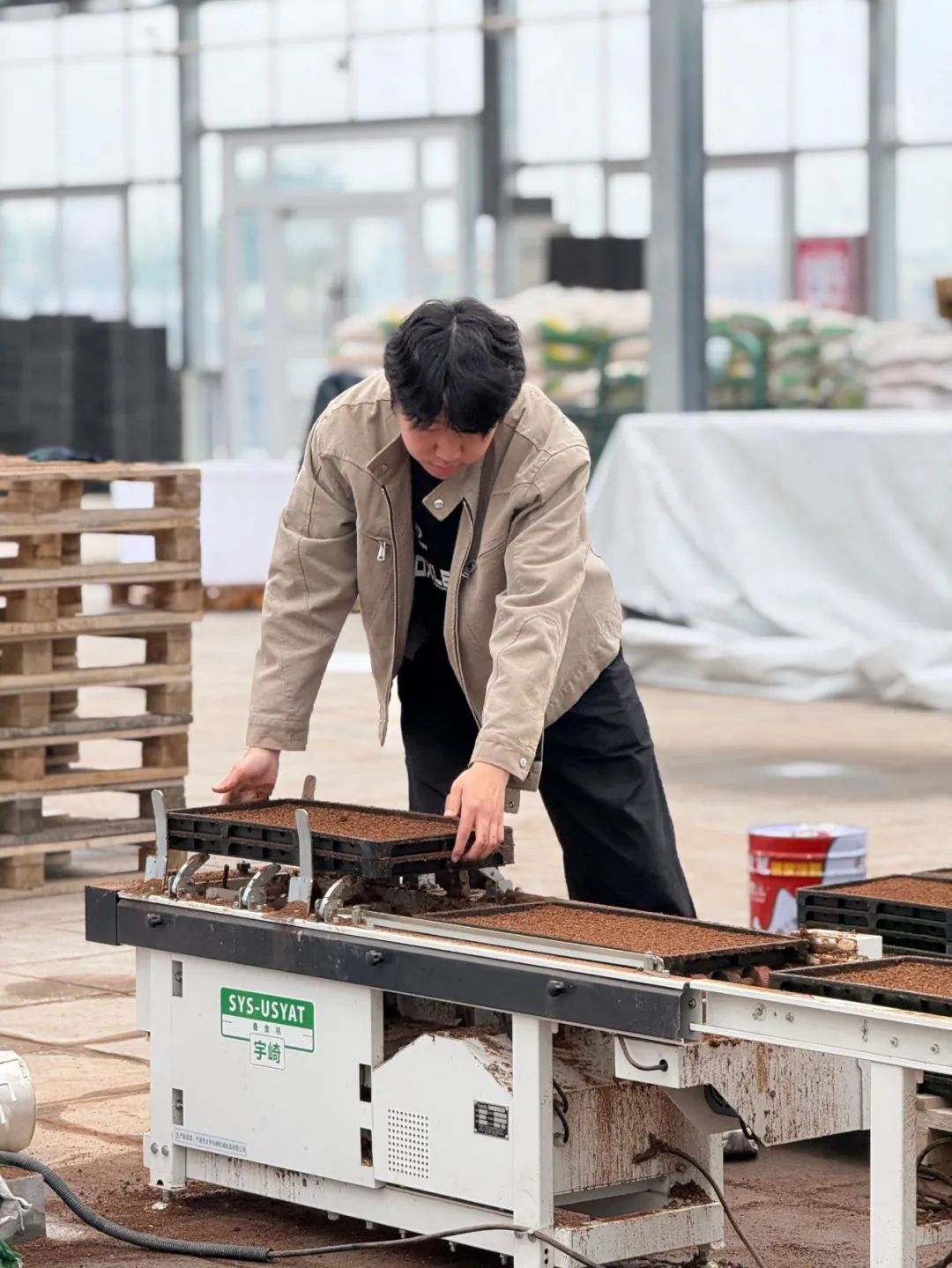 这座建筑面积超4200平方米的智能化育秧工厂于2024年10月建成,是四师可克达拉市六十八团投入1500万元打造的兴边富民行动示范项目。工厂采用玻璃顶连栋温室钢结构,温室内安装自动化播种生产线以及13台循环运动式育苗设备,单批次育苗可达40000盘。工厂通过“龙头企业+合作社+农户”的经营模式,今年首次投用,可有效解决早春气候低温多变影响,传统育秧模式费工费时等问题,为实现水稻稳产高产奠定坚实基础。