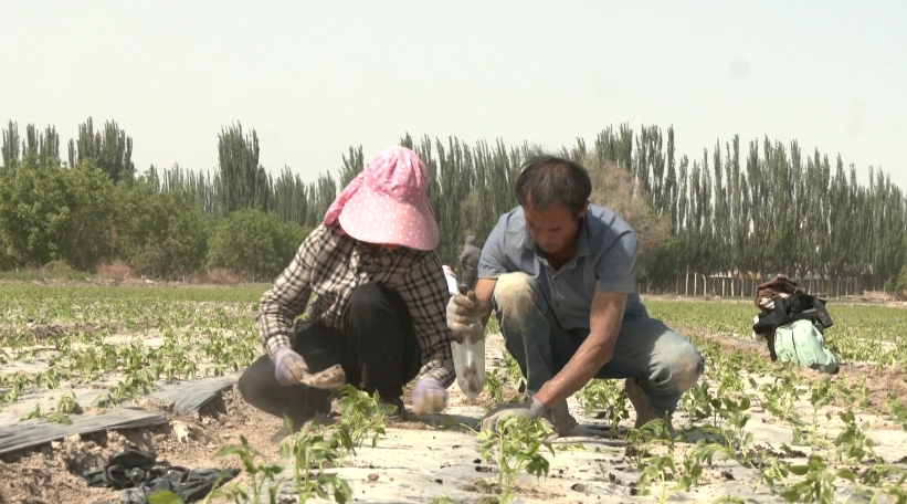 麦盖提县希依提墩乡琼库尔买里村村民麦日亚木古丽·阿布都外力说道:“从辣椒种植到管理和采摘,我都在这里务工,每天能赚100元,不仅学会了辣椒种植技术,还能照顾家里。”