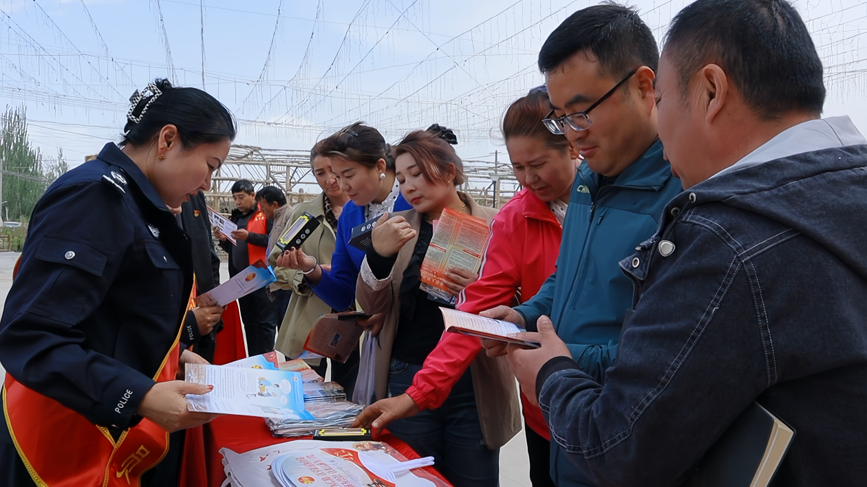 温宿县托乎拉乡2025年文化科技卫生“三下乡”示范服务活动在托万克苏布拉克村举行,这是政策宣传活动现场。刘诗婷 摄