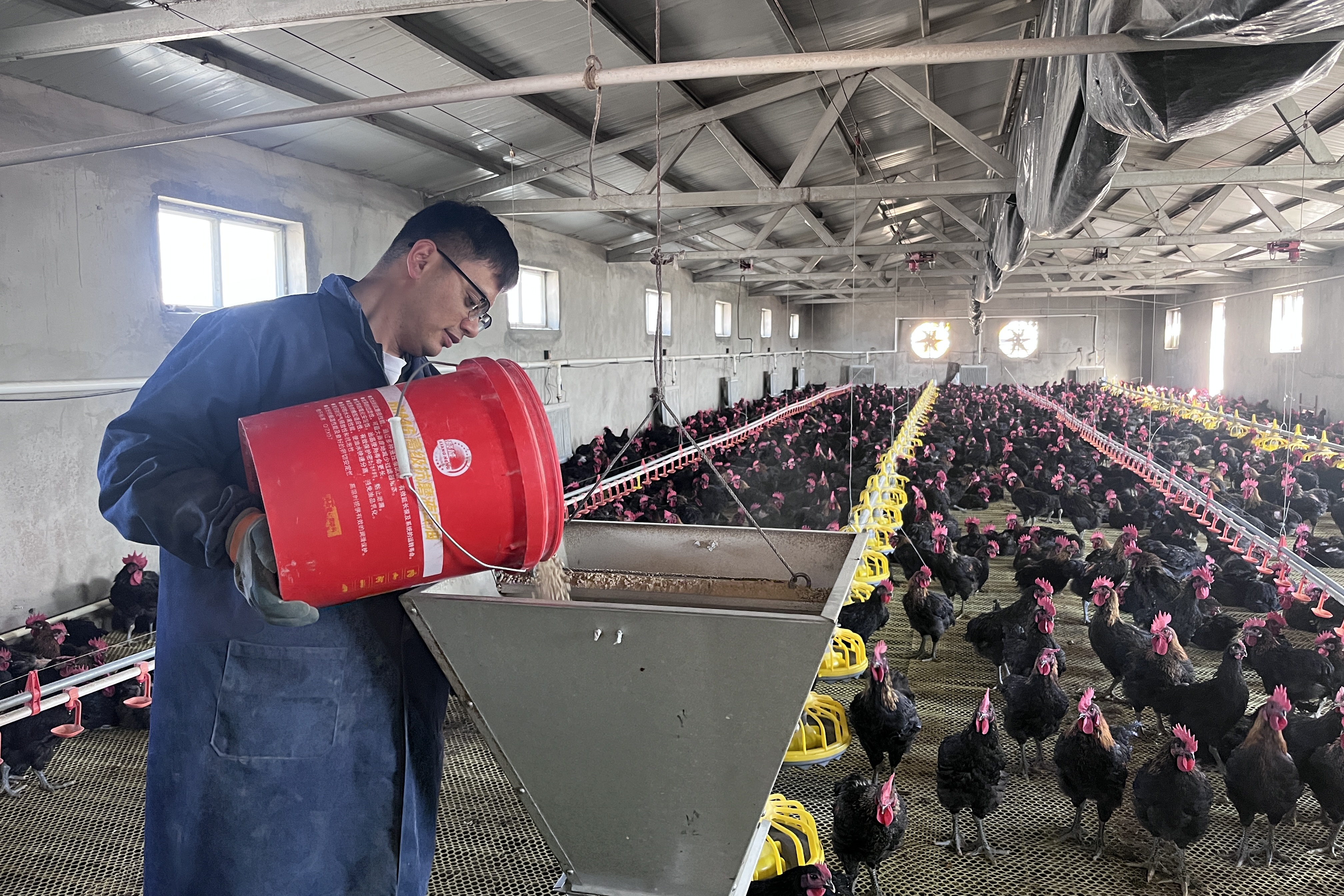 为拓宽养殖规模,打响天露黑鸡的知名度,村“两委”争取生态鸡养殖建设项目资金240万元,建成9990平方米厂区,配备恒温控制系统、自动饲喂线和物联网监测平台,实现养殖效率提升40%,月均出栏量突破5000羽,带动20名村民实现“家门口就业”,人均月增收2000元。
