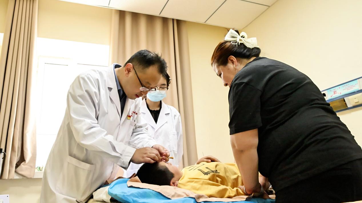 “你看,小银针比蚊子亲亲还温柔。”刘刚用银针在孩子手背模拟“雨点按摩”,待孩子破涕为笑后,才将银针平稳刺入合谷穴。