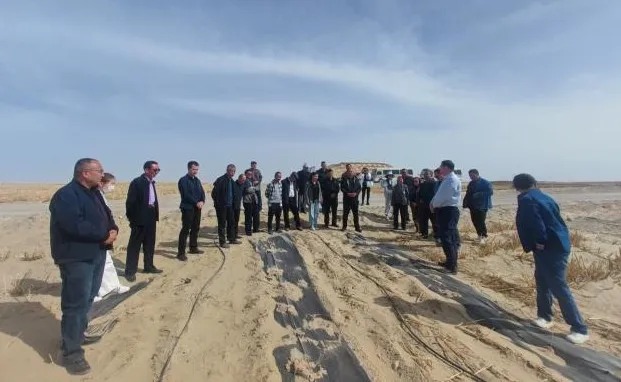 在阿尔金草原荒漠生态保护和修复项目区生物治沙点,代表们仔细地查看了草方格固沙、高立式沙障、人工种植灌木等“工程+生态”防沙治沙措施的推进情况,询问工程实施进度,仔细了解在实施过程中遇到的困难。