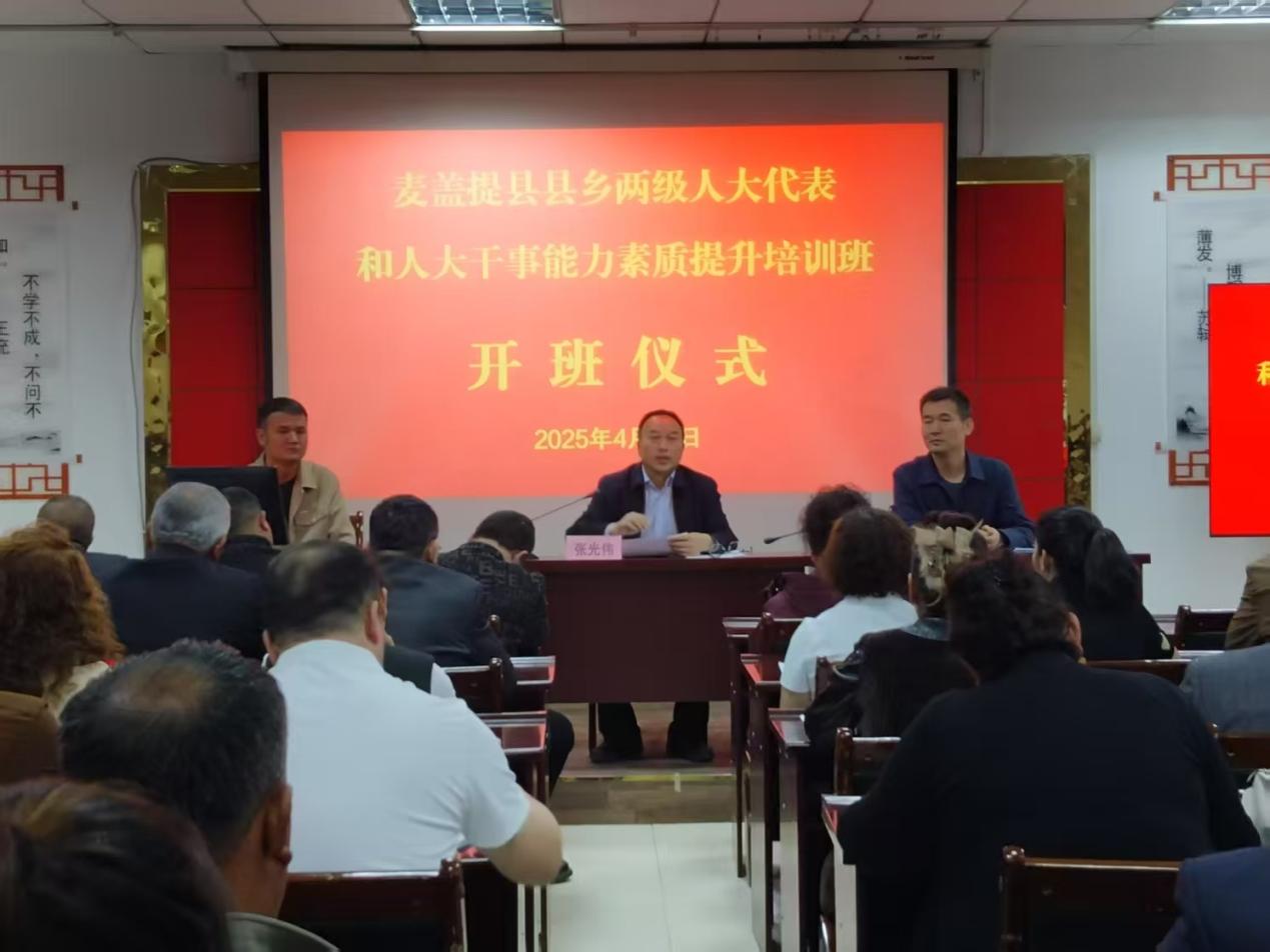 为进一步提升人大代表的履职能力,加强代表队伍建设,推动乡村代表联络站规范化建设,更好地发挥人大代表在维护社会稳定和促进民族团结进步等方面的作用,近日,麦盖提县人大常委会在县委党校举办了一场内容丰富、形式多样的代表履职培训班。来自全县各个领域的100余名人大代表齐聚一堂,共同开启了一场知识与思想的盛宴。麦盖提县人大常委会党组书记、副主任张光伟参加开班仪式并讲话。