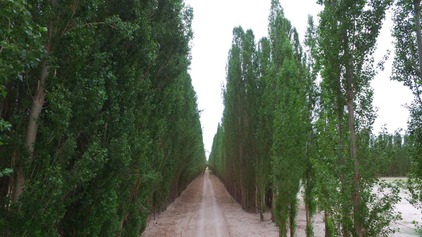 二儿子付国喜走在父亲付志周栽种的第一片白杨树林。