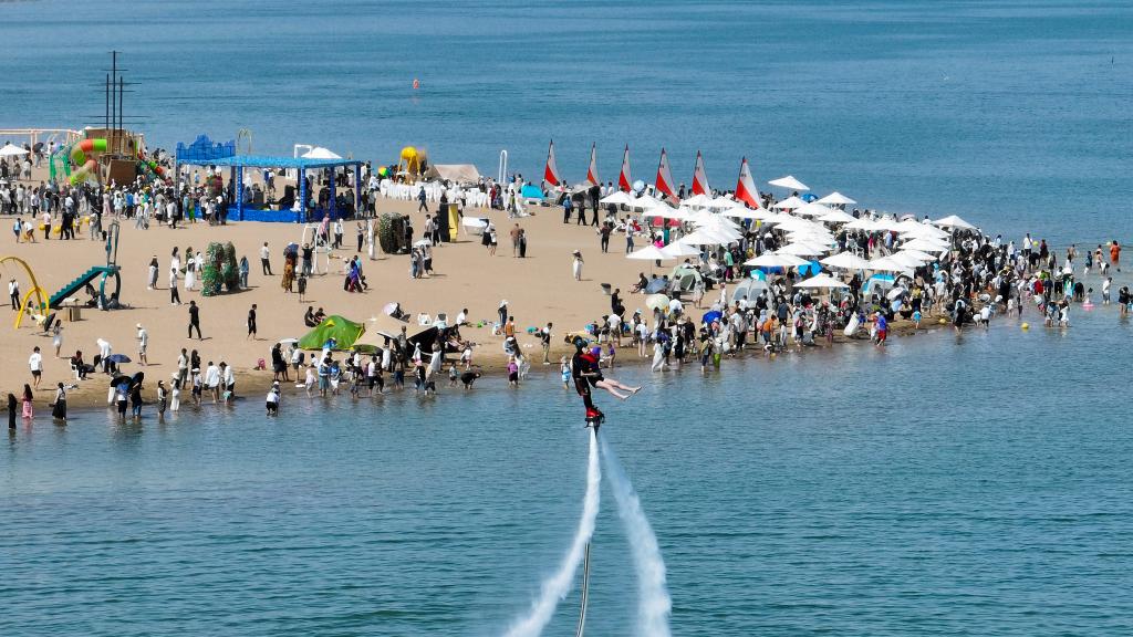 近年来,新疆博湖县大力实施全域旅游战略,依托资源优势,突出水特色,做好水文章,不断丰富水上娱乐项目,吸引各地游客前来观光旅游。(年磊)