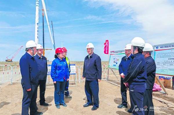 在古尔班通古特沙漠新能源基地,马兴瑞来到中煤40万千瓦风电项目、华电80万千瓦风电项目建设场地,察看风场建设进展,同项目负责人和有关同志详细交流。他强调,要聚焦重大项目,加快推进“沙戈荒”新能源基地建设,不断壮大新疆风电产业规模,有效带动相关产业发展,扩大就业容量,培育经济增长新动能。要加强新能源和电力发展规划衔接,推动源网协调发展。