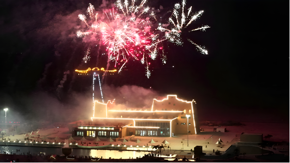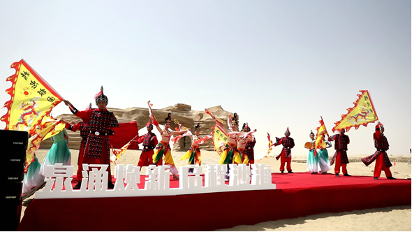 焕新盛典在鼓阵与水袖舞蹈中拉开帷幕,沙漠之门全新地标缓缓揭幕,越野车队呼啸穿越门洞,彩烟漫舞,为假期首日增添了一抹壮阔与浪漫。