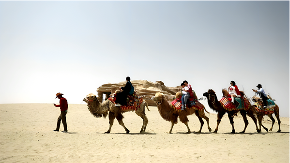 “在沙漠露营、听驼铃、看星空,很难想象这是一片由荒漠改造而成的景区。”山东游客孙立贤说。