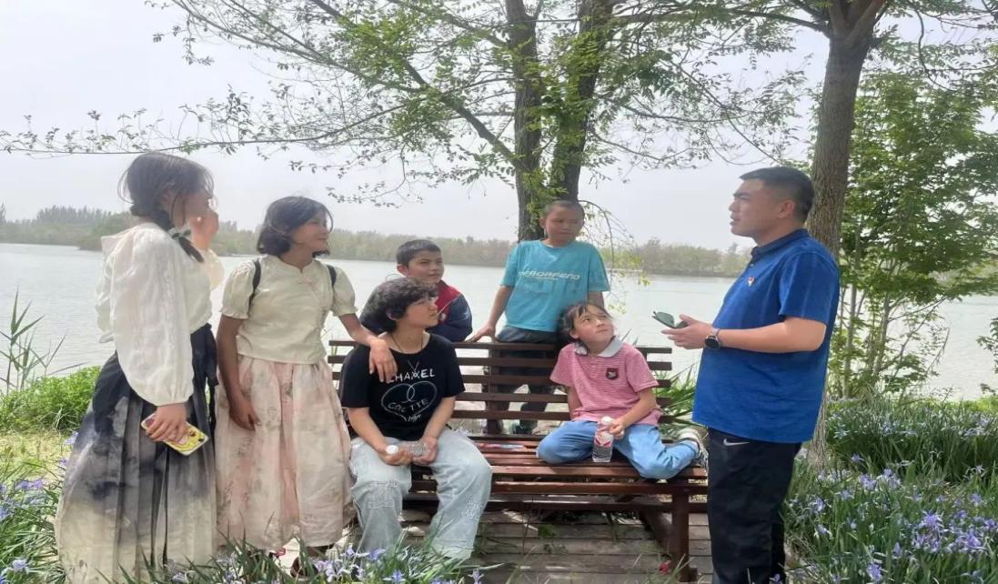随后,大家来到阿克苏国家湿地公园,温润的湿地气候,各种树木舒展新叶,湖边芦苇丛中嬉戏的野鸭,构成了一幅和谐美丽的自然画卷。驻村第一书记梁磊化身“自然导师”,为青少年们讲解湿地知识,介绍湿地作为“地球之肺”在维护生物多样性、调节气候等方面的重要作用,并深入阐释“绿水青山就是金山银山”的科学内涵,让生态保护的理念,随着拂面的清风,悄然种进少年们的心田。