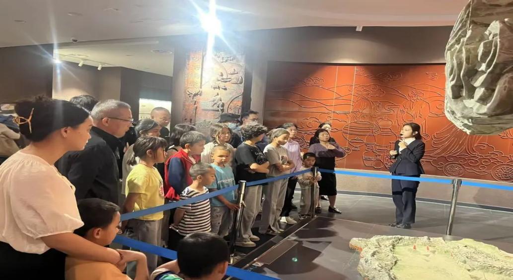 在历史文化展厅,青少年们跟着讲解员的脚步,解锁了古代先民的“智慧生存指南”;电脑模拟的苏巴什佛寺遗址、龟兹、姑墨等古代城邦的辉煌过往,都让青少年们仿佛穿越时空,切身感受到历史的厚重与沧桑,心灵受到深深震撼。