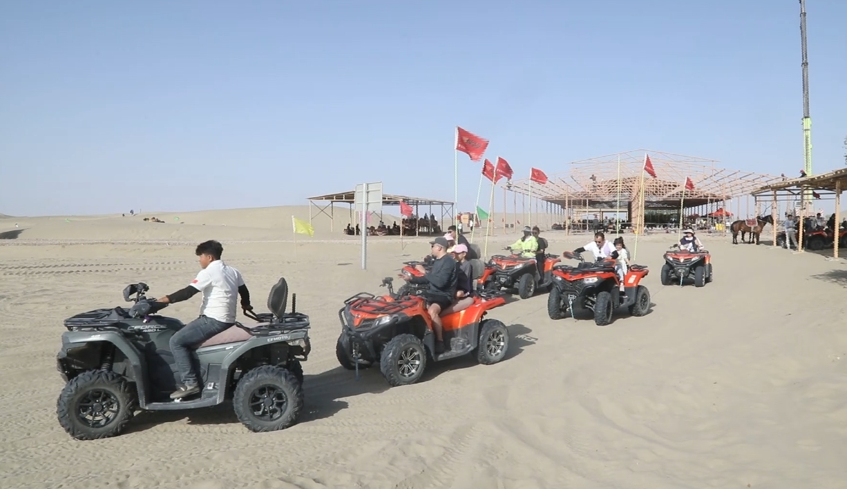 江苏南京游客王君说道:“这是我第一次来到祖国的南疆,感觉特别辽阔。我刚到这里,就被大家的热情感染了。虽然还没玩遍所有项目,但我已经迫不及待想去体验。沙漠深处充满神秘,就像海洋一样未知。”