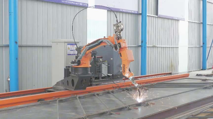 G3036阿克苏至阿拉尔高速公路施工第二合同段综合场站负责人王广斌说:“以前焊盖梁骨架片,两个工人同时操作,一天大概只能焊八九片。现在用机器人,焊一片只需40分钟,而且焊缝的长度、高度、宽度,误差小于等于一毫米,精度更高。”