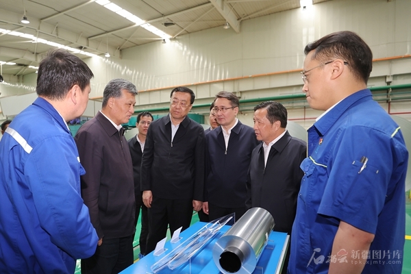 5月7日,自治区党委书记马兴瑞在乌鲁木齐调研。这是马兴瑞来到位于乌鲁木齐甘泉堡经济技术开发区的新疆众和股份有限公司,察看铝箔产品生产和展示,与相关负责人深入交流。 □石榴云/新疆日报记者崔志坚摄