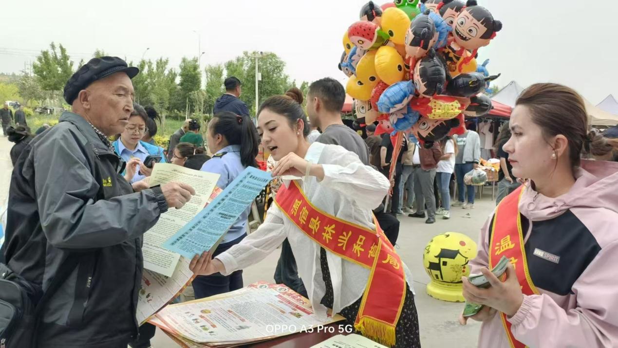 5月10日,温宿县借“巴扎日”的热闹氛围,开展了以“人人讲安全、个个会应急——排查身边灾害隐患”为主题的防灾减灾宣传活动(肖燕 摄)