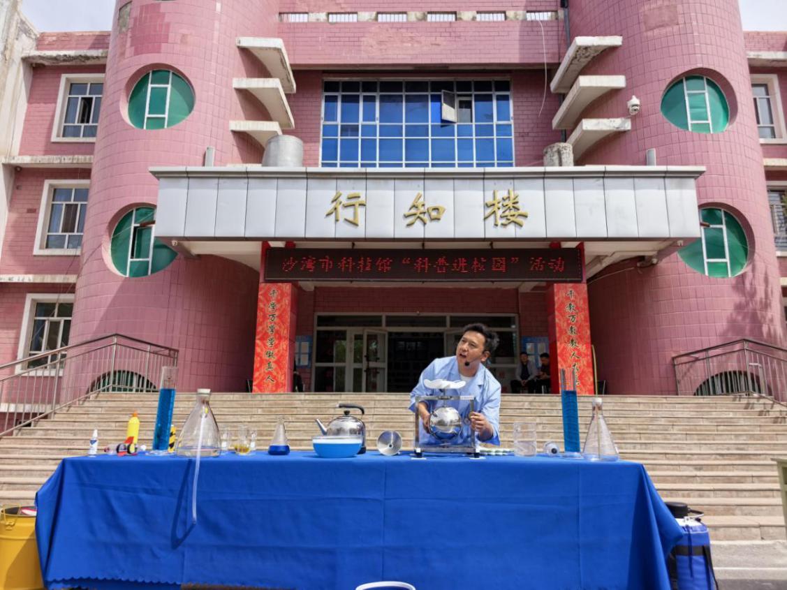 自5月8日开始,由沙湾市科协主办、市科技馆承办的“科普进校园”活动正式拉开序幕,此次活动以“实验嘉年华 科学乐开花”为主题,设置30余个科学实验演示活动和互动环节,走进全市28所中小学及幼儿园,为青少年普及科学知识,弘扬科学家精神,激发青少年学科学、爱科学、讲科学的热情。