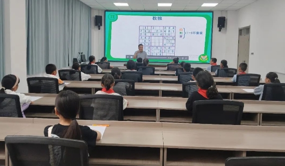 课堂上,援疆教师化身“数字向导”,把晦涩的数独规则编织成生动的故事,从四宫格数独的基础认知,到六宫格的进阶挑战,利用“线索追踪”“排除陷阱”等形象比喻,引导学生逐步探索数独的奥秘。在整个过程中孩子们时而托腮沉思,在数字的迷宫中寻找突破口;时而兴奋举手,与同伴分享解题思路,整个教室里洋溢着浓厚的求知氛围。援疆教师穿梭在课桌间,耐心解答疑问,用鼓励的话语激发学生的探索热情。