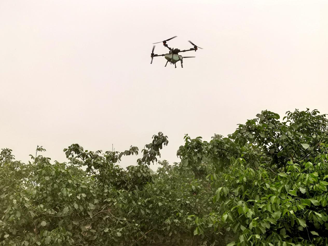 无人机在戈壁新村为果农喷施叶面肥。李哲清 摄