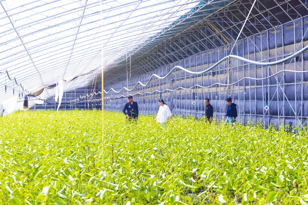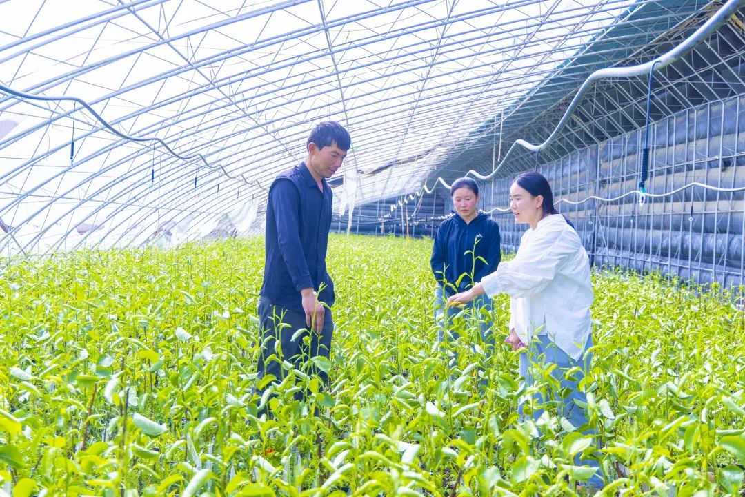 香梨科技小院工作人员正在设施农业大棚内察看苗木生长情况。