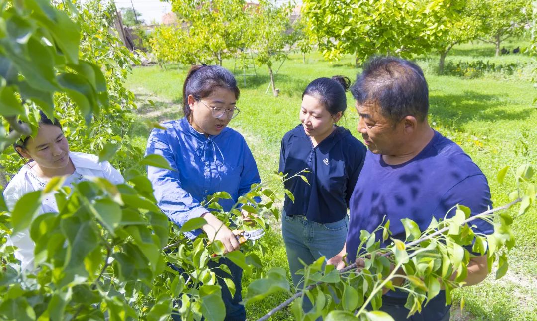 香梨科技小院工作人员正在为梨农讲解梨树种植技术。
