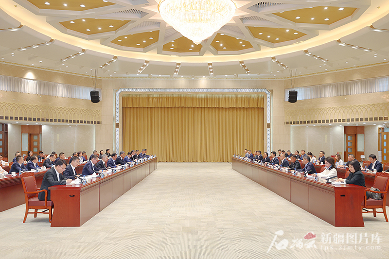5月13日,自治区党委书记马兴瑞在乌鲁木齐会见澳门工商界代表国情考察团一行。石榴云/新疆日报记者 崔志坚 摄