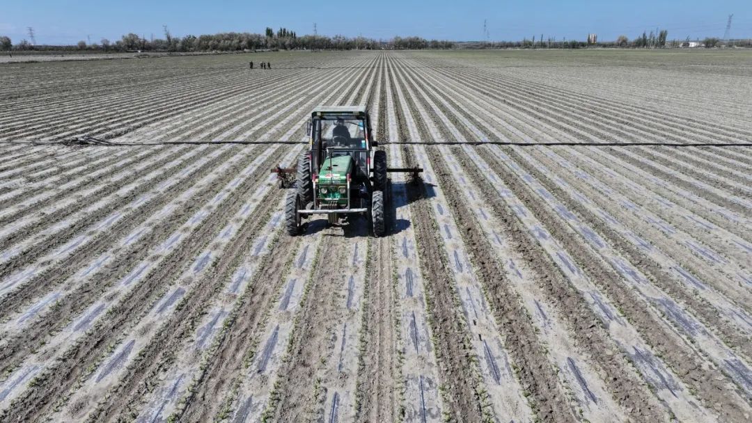 5月8日,记者在六十四团十五连高标准制种玉米地块看到,农机来回穿梭进行中耕作业,种植户们正忙着在田间定苗,田间一片繁忙景象。