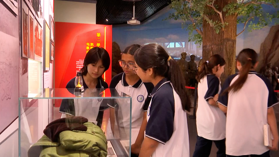 活动中,八十九团中学近百名学生走进双河市“红星耀双河”陈列馆,在小小红星讲解员的带领下有序参观各个展区,了解五师双河市历史文化发展脉络和珍贵文物背后的故事。