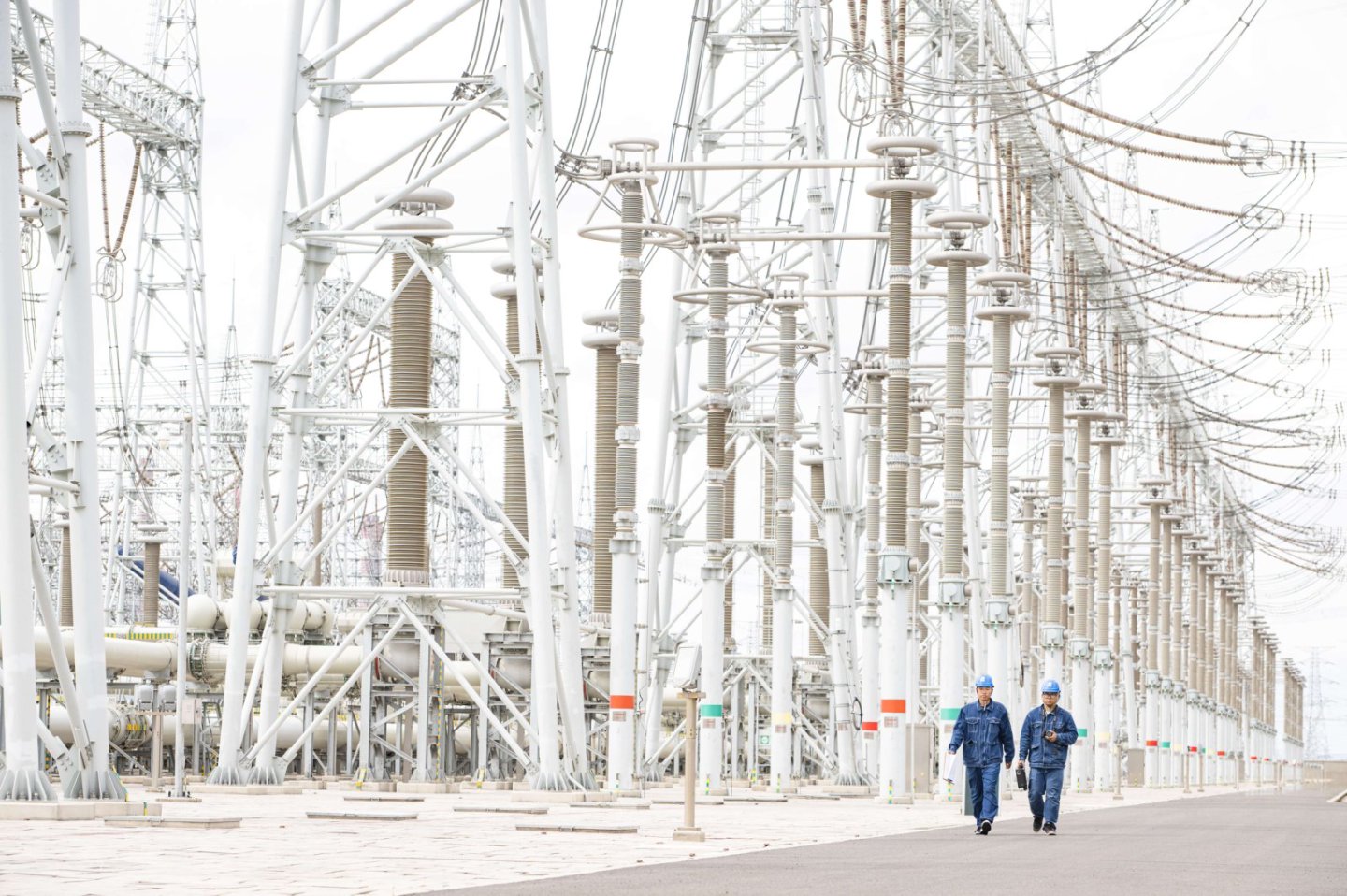 昌吉—古泉±1100千伏特高压直流输电工程昌吉换流站,运维人员正在站内巡检。何龙摄
