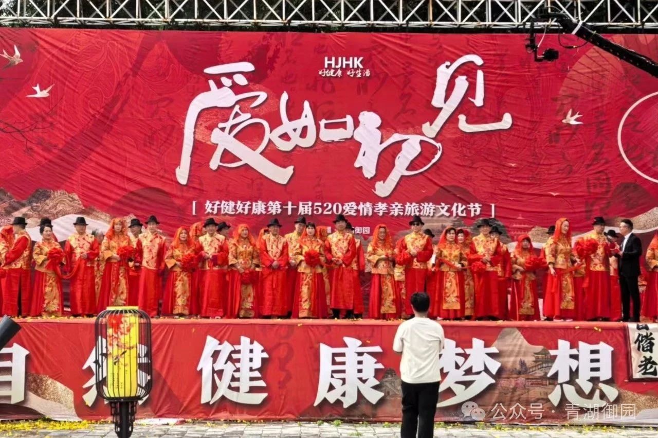 5月20日,以“孝亲敬老·金婚传家”为主题的第十届“520金婚庆典”活动在青湖御园举行。