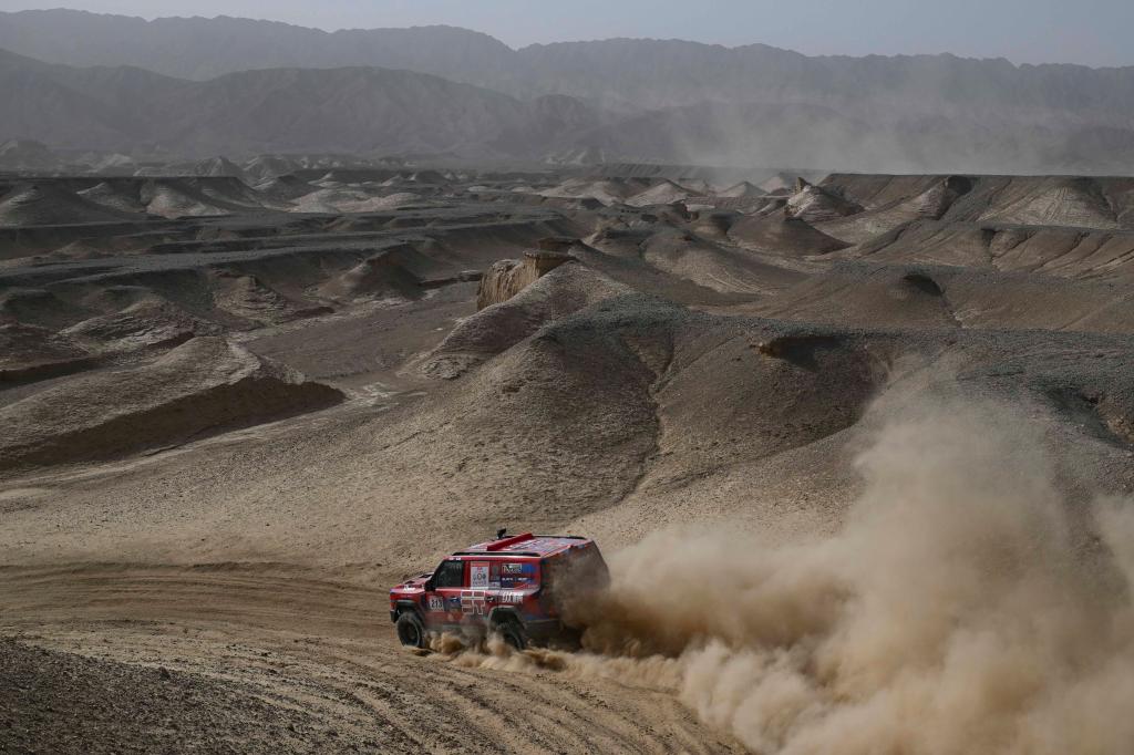 5月20日,刀峰中国勘路者汽车车队车手李建民、领航员赵鹏飞驾驶赛车在排位赛中。