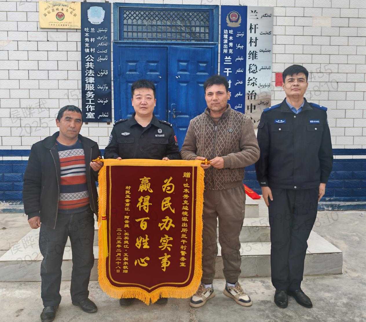 2025年3月的托峰脚下,春寒料峭。新疆出入境边防检查总站阿克苏边境管理支队吐木秀克边境派出所兰干村警务室门前,50岁的核桃种植户买大叔和36岁的务工者玉大哥紧紧攥着一面绣着“为民办实事 赢得百姓心”的锦旗,执意要亲手交给他们的“吾甫尔江兄弟”。