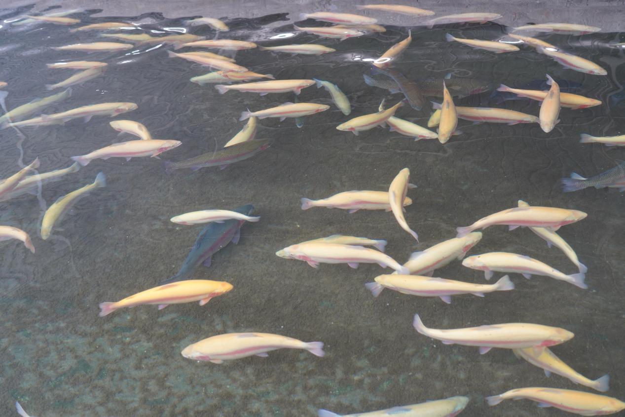 温宿县托甫汗镇冷水鱼养殖基地的金鳟鱼。(艾海提·毛勒吐尔迪 摄)
