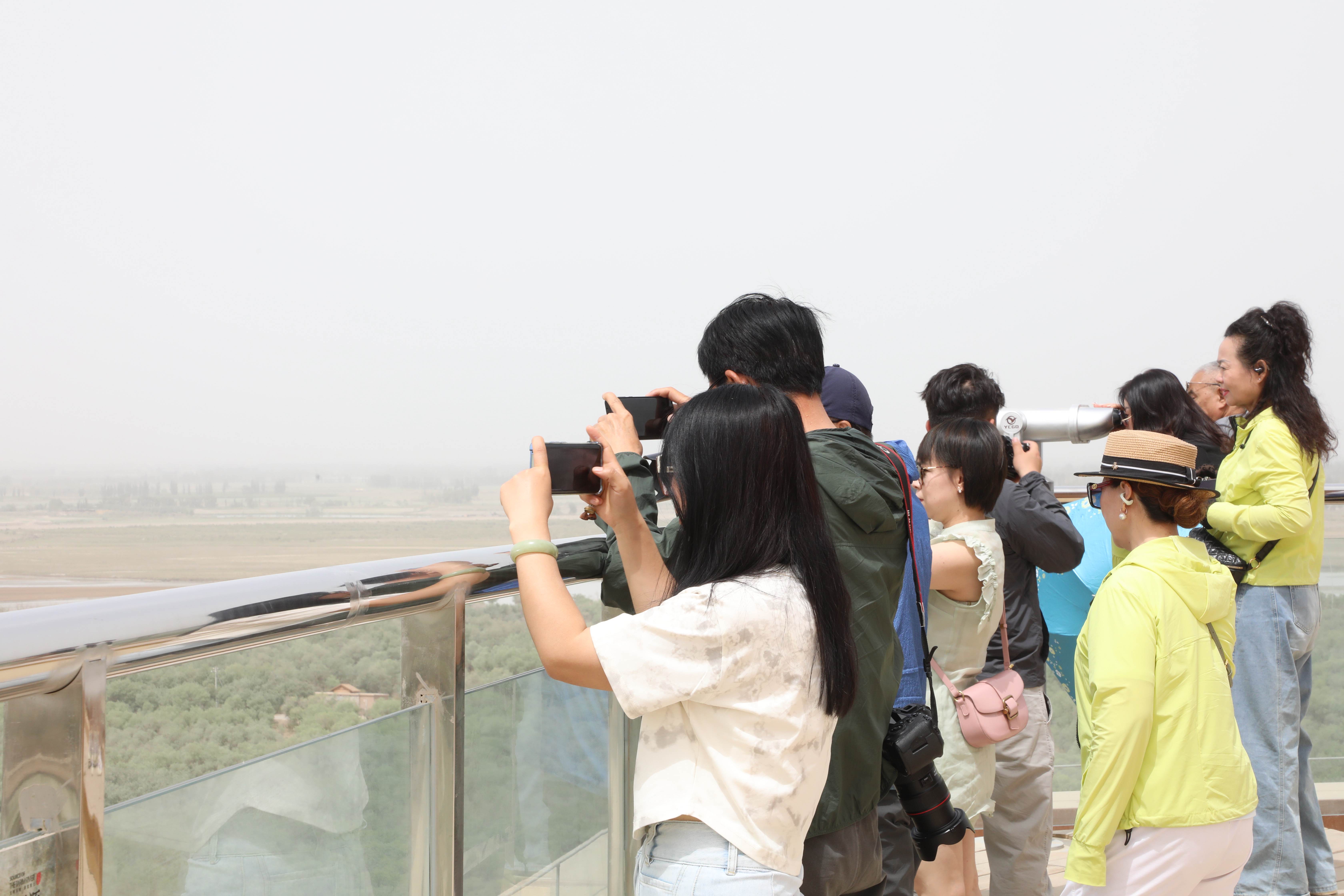 旅行社代表在塔克拉玛干沙漠之门景区聆听旅游资源介绍。曾维 摄