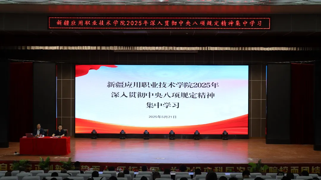 为深入贯彻中央八项规定精神,加强学院党风廉政建设,提升全体党员干部的纪律意识和作风素养,新疆应用职业技术学院于2025年5月21日组织开展了专题学习活动。学院党委书记陈梅兰,学院党委班子成员,全体教职工参加会议。学院党委副书记,组织人事部(教师发展中心)部长(主任)王广强主持会议。