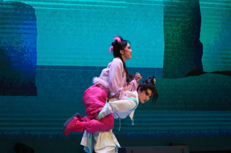 当天,随着演出大幕拉开,哪吒邂逅乔装垂钓的姜子牙并获赠法宝《太公兵法》的场景呈现在舞台上。然而,顽皮的红孩儿偷走兵书,哪吒一路追至火云洞,一场奇趣横生、惊心动魄的冒险就此展开。
