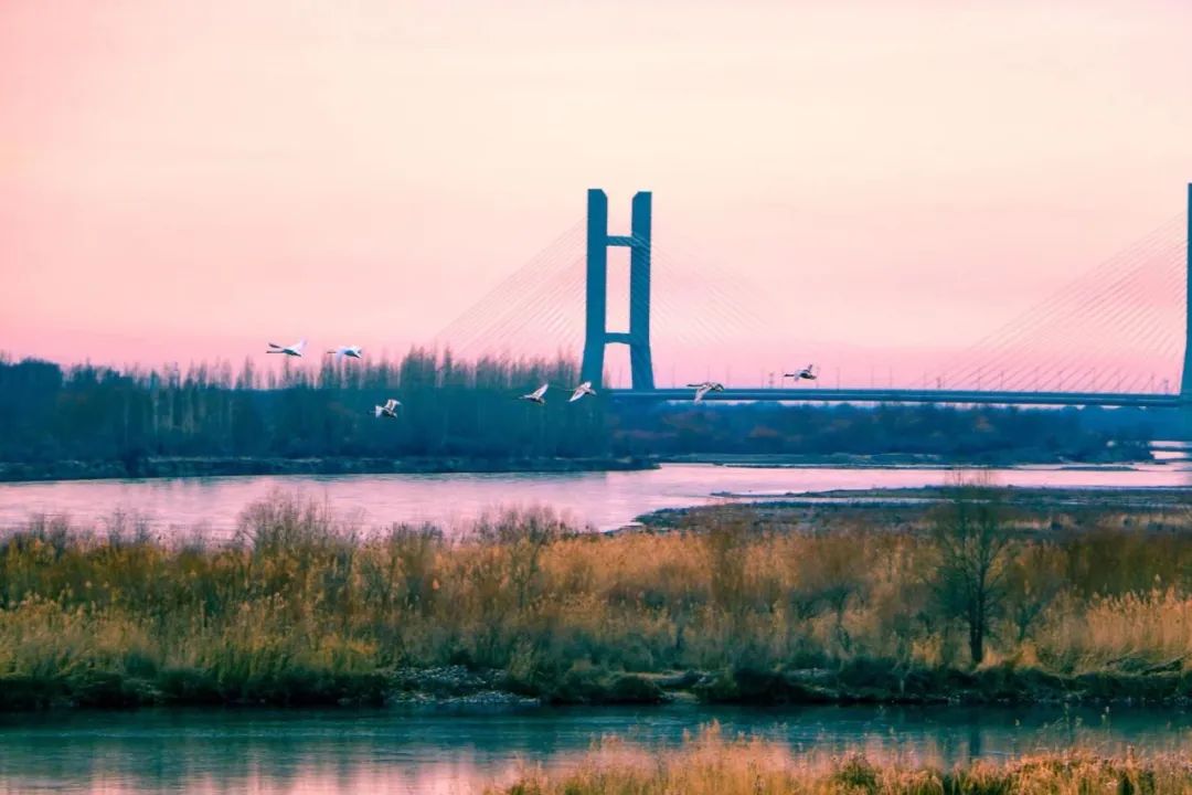 资料显示,大桥全长2527米,桥长1767米,主桥跨径320米,索塔采用双柱式变截面“H”形,是新疆首座双塔双索面预应力混凝土斜拉桥。大桥北起六十六团,跨越伊犁河,终点位于六十八团境内。