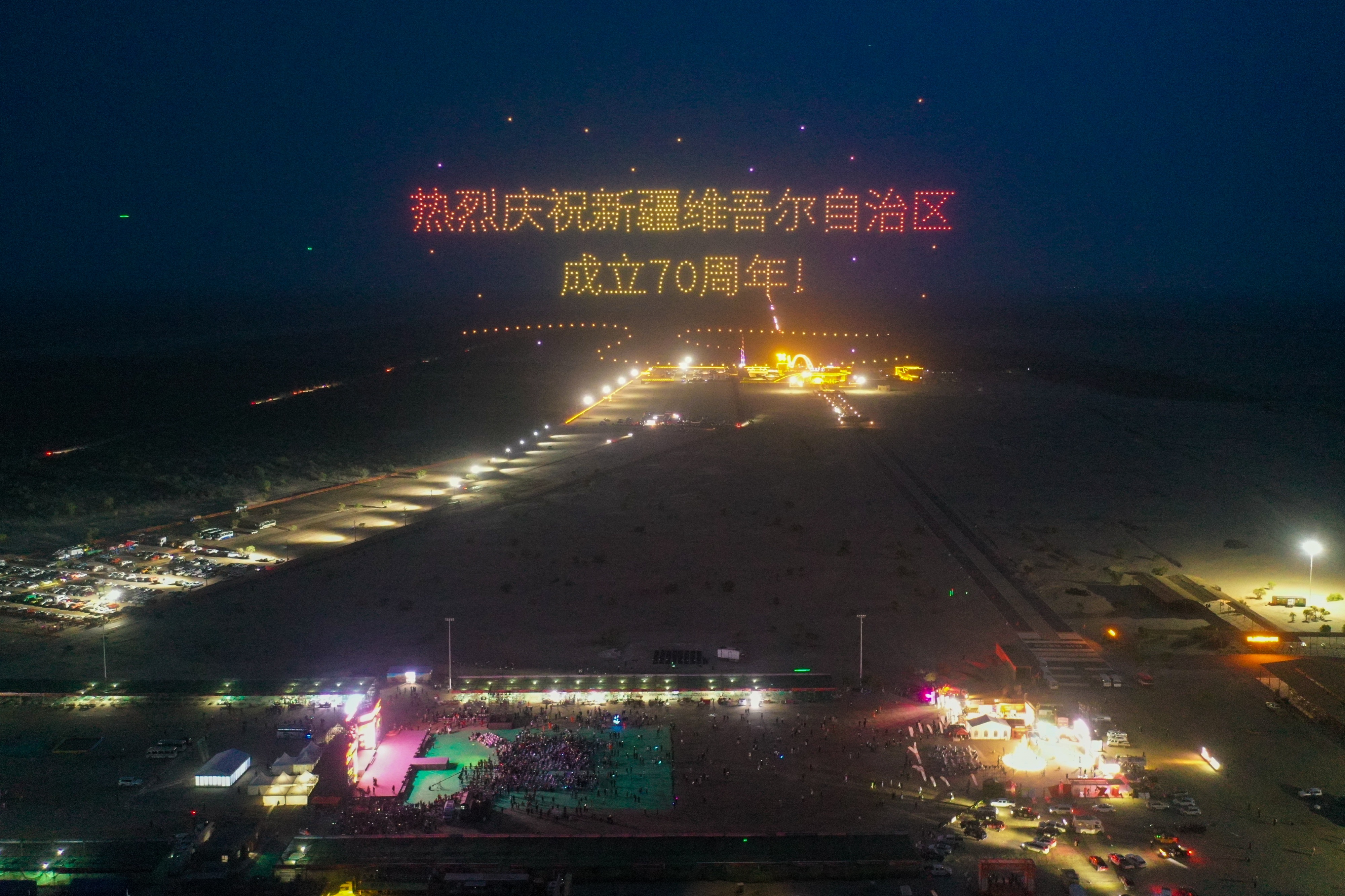 活动中,当精彩的文艺演出在沙海之畔舒展成流动的画卷,欢歌笑语响彻云霄;当梦幻的无人机光影秀于夜幕之上编织出璀璨经纬,科技与艺术共舞苍穹;当震撼的烟火表演在天地之间绽放成绚烂花火,星芒与烈焰同绘长卷,刹那间,引擎的轰鸣仿佛还在耳畔回响,而这场用火光书写的盛典,正为环塔拉力赛的热血征程烙下最璀璨的句点,让沙漠的夜晚也记住了越野人眼中燃烧的星光。